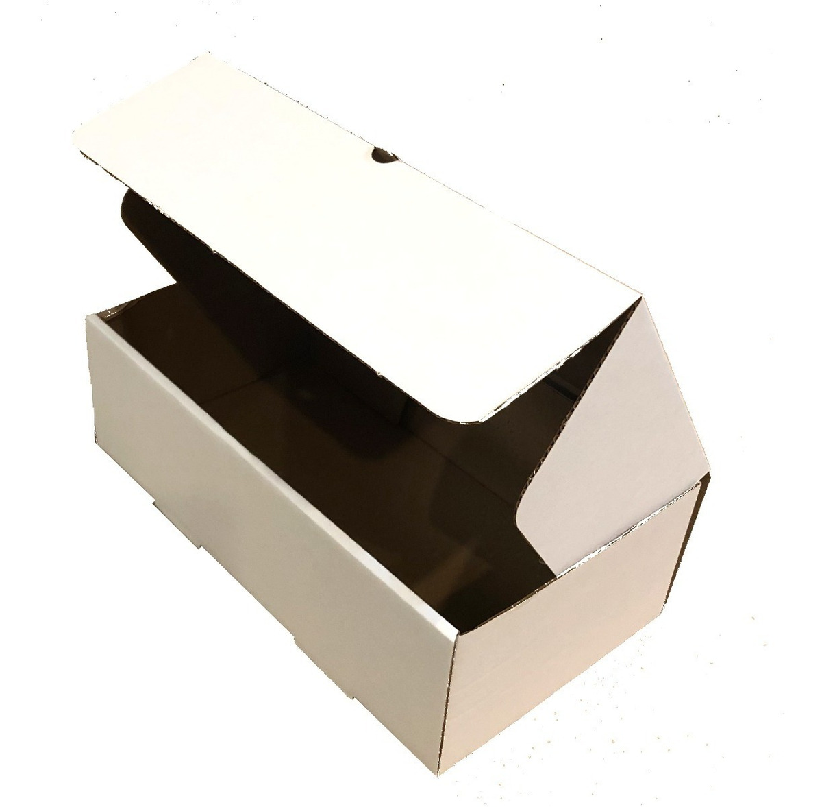 Cajas microcorrugado color Blanco por fuera, marrón por dentro.